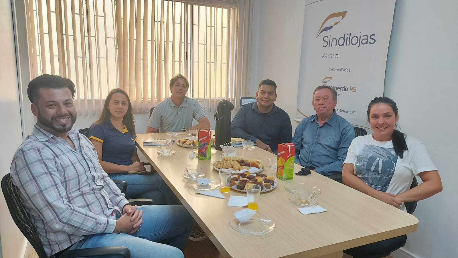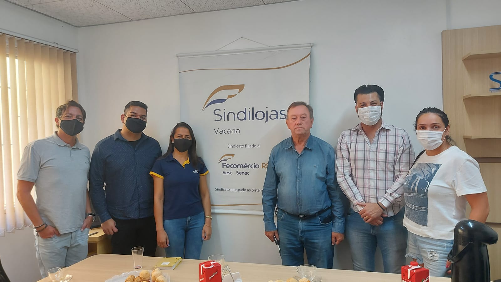 Na última terça-feira (08/02), o Sindilojas Vacaria recebeu a visita do presidente da Câmara Municipal de Vereadores, Fabiano Santos Silva. Além dele, também participaram da reuniãoo presidente do Sindilojas Vacaria, Vitor Ziegler, os diretores do Sindilojas Vacaria Francyelly Gomes e Luis Bortolon e Roberta Pereira da Costa Silva e Marco Aurélio Xavier, representantes de SESC Vacaria e Senac Vacaria, respectivamente.