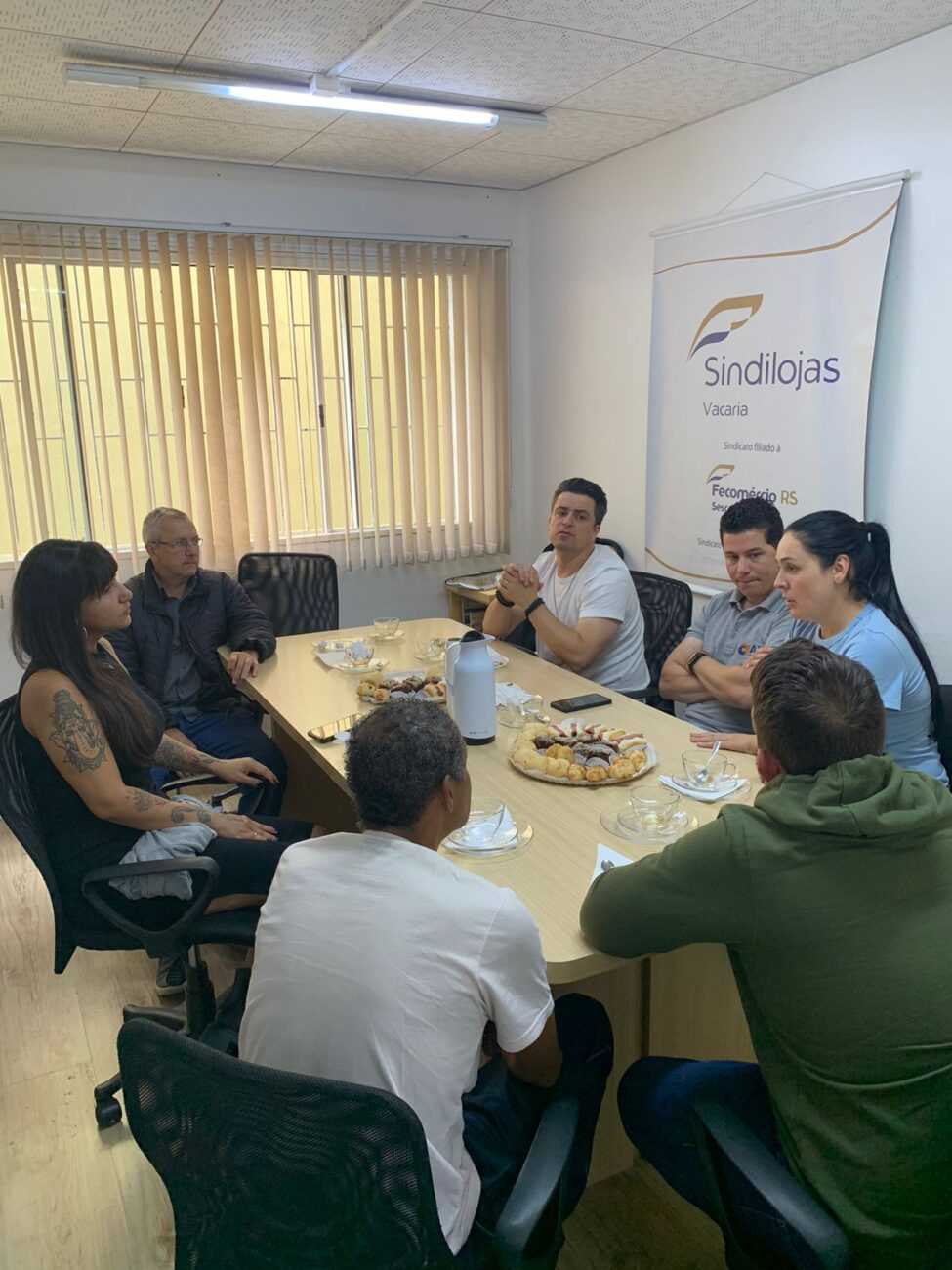 Na manhã desta quarta-feira (05/04) a Diretoria do Sindilojas Vacaria se reuniu com a diretoria do Sindicom para discutir a Convenção Coletiva de Trabalho